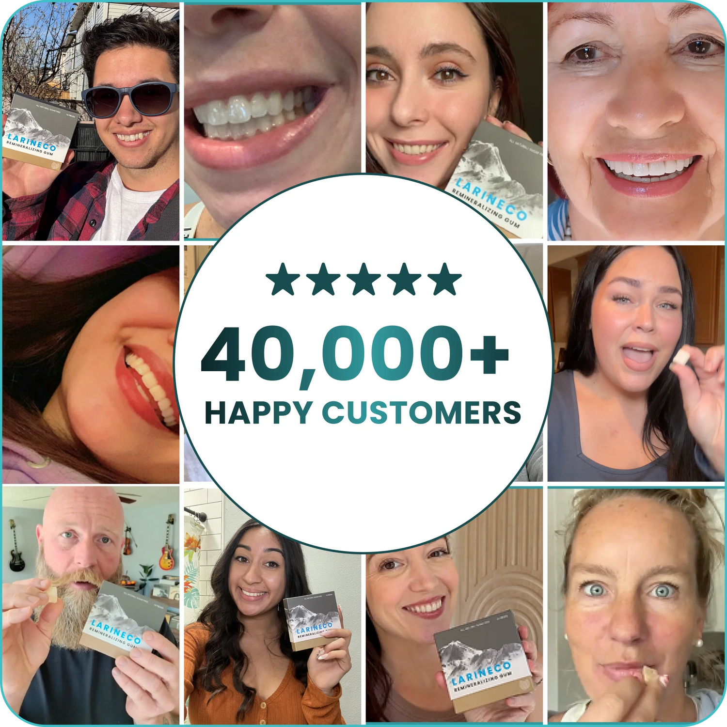 When you chew Larineco, the nHA bonds directly with your teeth, repairing microscopic damage, filling in weak spots, and creating a smooth, stain-resistant surface.